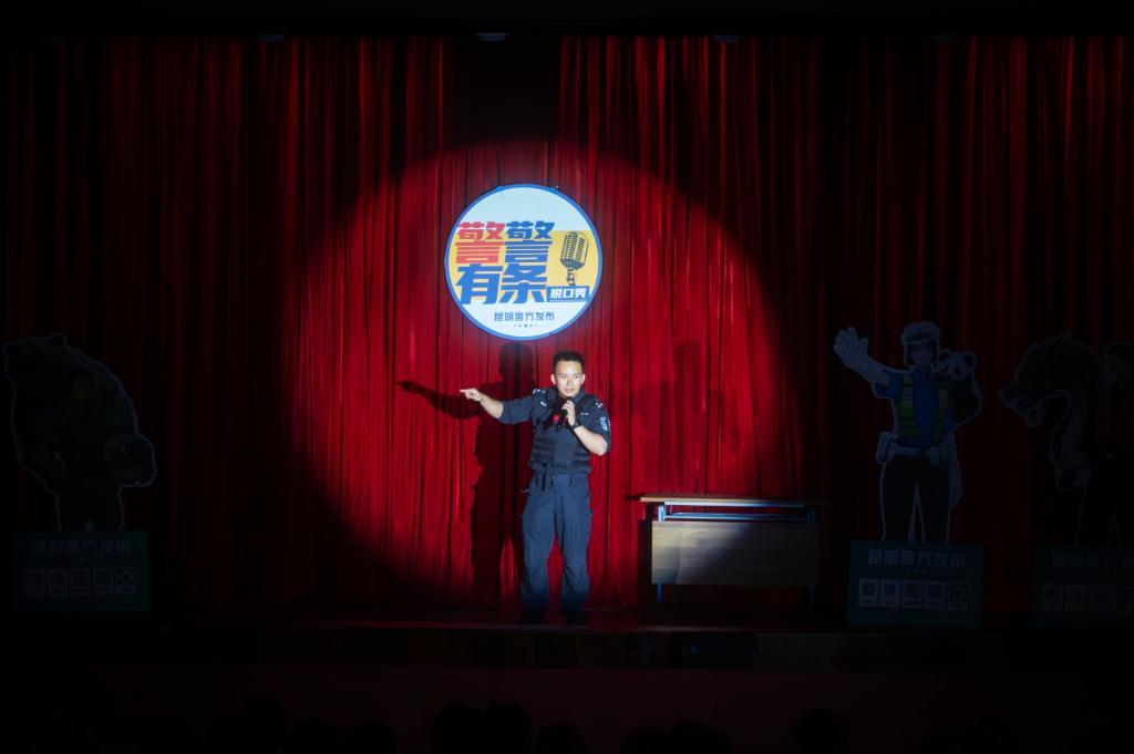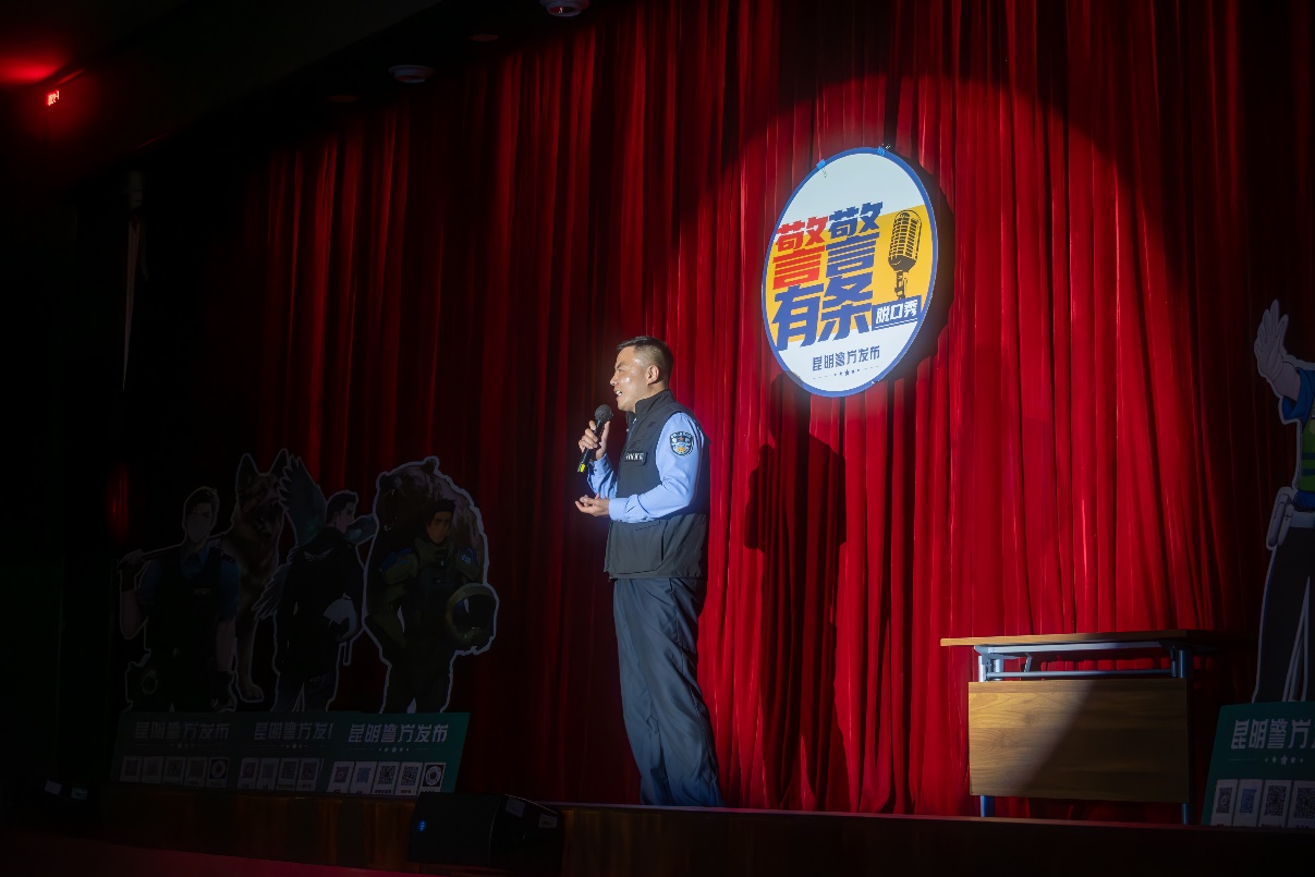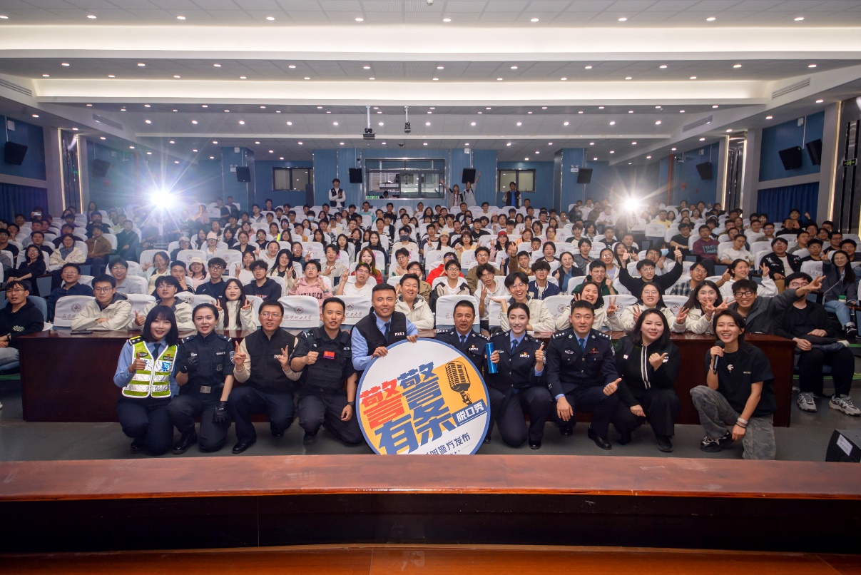 活动现场,来自昆明市公安局的民警与辅警们以脱口秀演员的身份登台,将日常工作中遇到的真实案例转化为诙谐幽默的脱口秀“段子”,有机融入国家安全、反诈技巧、交通安全以及法律常识等安全防范知识要点,活动中的“网购陷阱”“校园贷套路”等话题,紧密结合师生工作生活实际,为现场师生将遇到的安全隐患娓娓道来,深入浅出地讲解法律法务常识,让现场师生在笑声中理解警务工作的艰辛,在一个个巧妙设计的“包袱”中接受安全警示教育,增强了师生的安全防范意识。