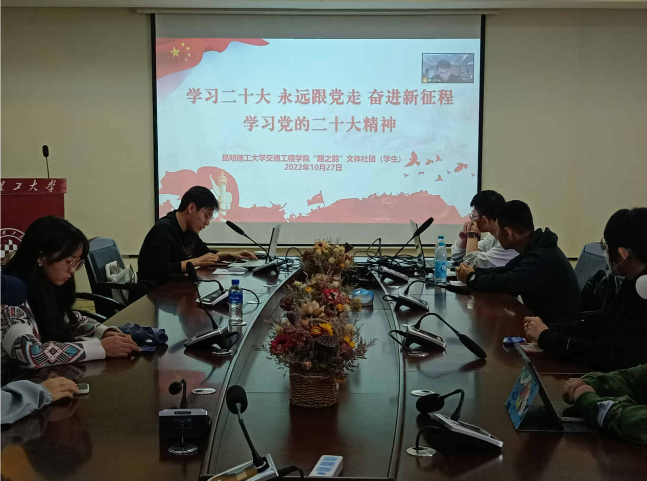 10月27日19:30,院“路之韵”文体社团(学生)团支部在交通楼A308会议室开展了“学习二十大 永远跟党走 奋进新征程”主题团日活动。社团团支部全体成员参与了本次团日活动。