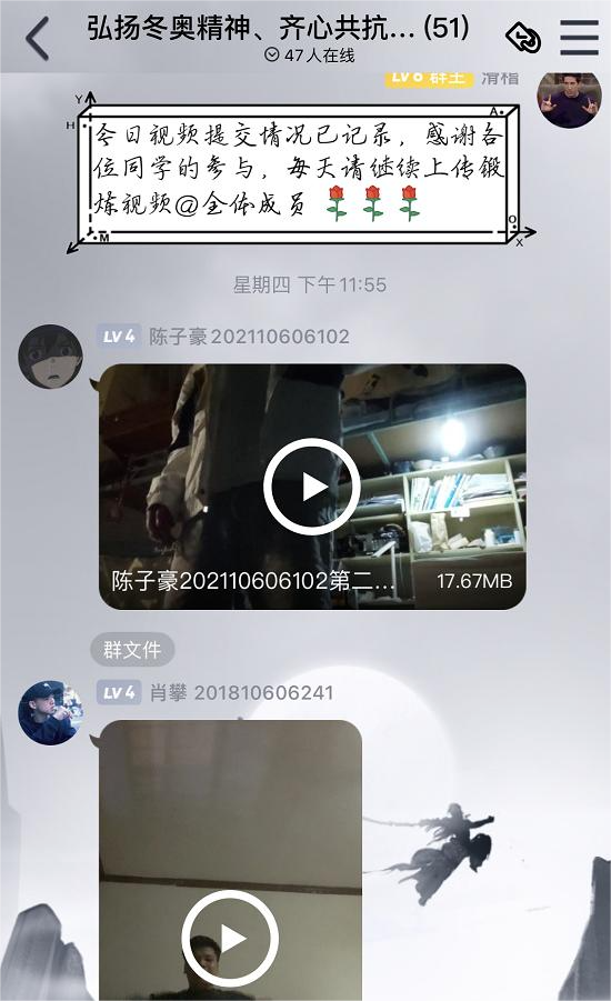 活动共分为“线上答题”和“连续三天锻炼打卡”两部分。在完成线上答题后,参与活动的同学们在宿舍,操场等地以跑步;俯卧撑;跳绳等多样化的方式完成了本次活动。