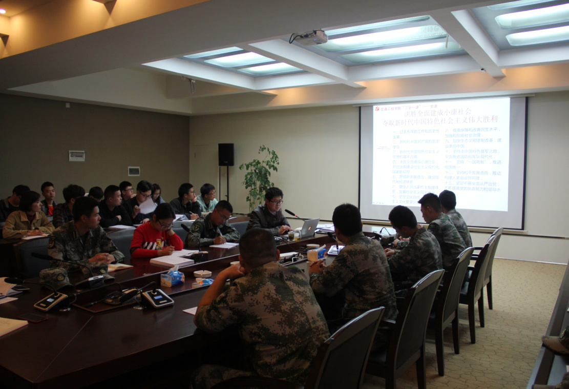 学生党支部党课学习,学院党委副书记张强、交通运输专业学生党支部书记李俊芳出席,此次党课的主题是“学习党的十九大精神,服务学院跨越式发展”。国防生党支部、车辆工程专业学生党支部、交通运输专业学生党支部、物流工程专业学生国防生党支部的各党员聆听了党课。