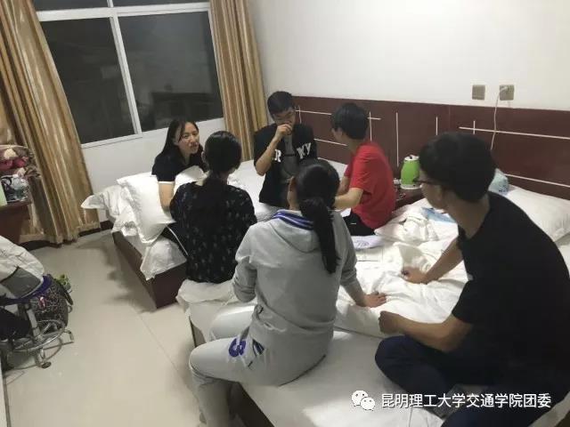 在经过一天的长途跋涉,终于到达了目的地,即使已经身心疲惫,但老师和同学们依旧在讨论上课形式和活动内容。