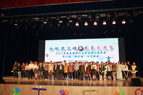此次晚会由歌舞、相声、小品等十个节目类型组成,晚会的第一个节目是情景舞蹈《交通梦》,演员们热情奔放的表演迅速将大家带入晚会的节奏。接下来是由交通院内燃机民谣乐队带来的表演《平凡之路》,他们的精彩表演引发了台下阵阵欢呼。随后是由交通院国际班同学带来的诗歌朗诵《生如夏花》。之后平安产险云南分公司的员工给大家带来的小品《查勘》深得观众喜爱,晚会随之被推向了高潮。除此之外,由学院两位女生带来的相声——《考上大学后》更是引发台下阵阵欢笑声,观众席掌声连连。在这些精彩的表演之后是激动人心的抽奖环节,由副院长雷基林教授为我们抽取二、三等奖的获得者。抽奖之后,我们欣赏了小提琴、钢琴、古筝等乐器带来的合奏《卷珠帘》,歌曲串烧《流砂?年华》。接着街舞社的《kissing strangers》,演员们激情澎湃的表演使现场气氛高涨。还有搞笑的小品《两只狗的生活意见》。然后由平安产险云南分公司的经理为我们抽取了晚会终极大奖一等奖的获得者并发言向同学们传授经验,谈感想。最后学院的草原歌神欧觉带来的藏语独唱《欢聚吉祥》,让我们领略到了藏族人民的欢乐,同时,晚会所有节目表演完毕,主持人宣布此次文艺晚会圆满结束并邀请嘉宾和领导上台与演职人员合影留恋。至此,魔镜号