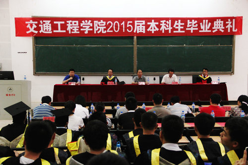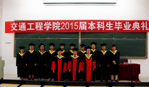 2015届毕业典礼在呈贡校区中心100举行。学院党委书记马旭东、院长何民教授、党委副书记吴历勇、副院长沈颖刚教授、学位分委员会申立中教授、交通工程系主任秦雅琴、交通运输系主任李耀平、车辆工程系主任毕玉华、物流工程系主任税文兵、综合办主任冯浩、教务办主任刘芳、学工办主任王懿娜、团委书记张强老师、辅导员周宇航老师、蔡红老师、李春梅老师都出席了毕业典礼。本次典礼由吴历勇老师主持。