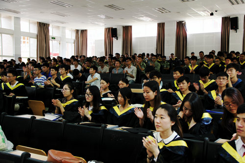 讲话结束后吴历勇老师宣布了优秀毕业生名单,副院长沈颖刚教授宣读了获得学位同学名单。之后何民教授、沈颖刚教授,申立中教授为获得学位的毕业生举行了拨穗仪式并合影留念。拨穗的意义,代表稻穗或麦穗成熟,象徵毕业生已学有所成,可以展翅高飞 。