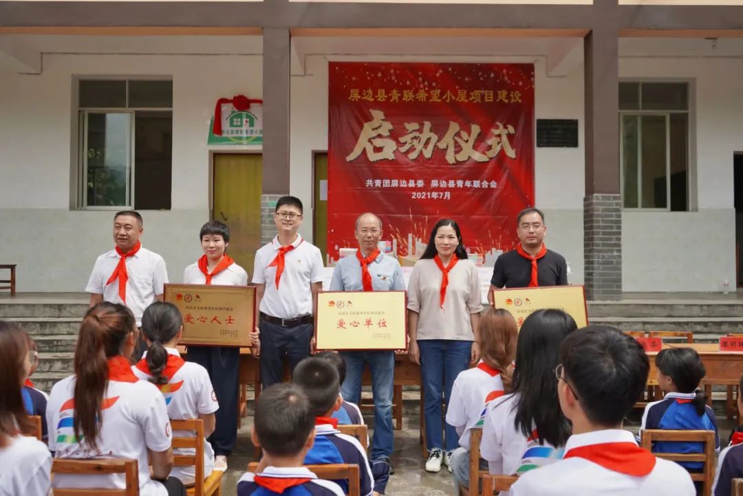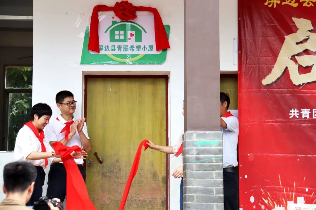 最后屏边县政府相关领导、湾塘中心学校校长和实践队的教师代表一同进行了“希望小屋”揭牌仪式。