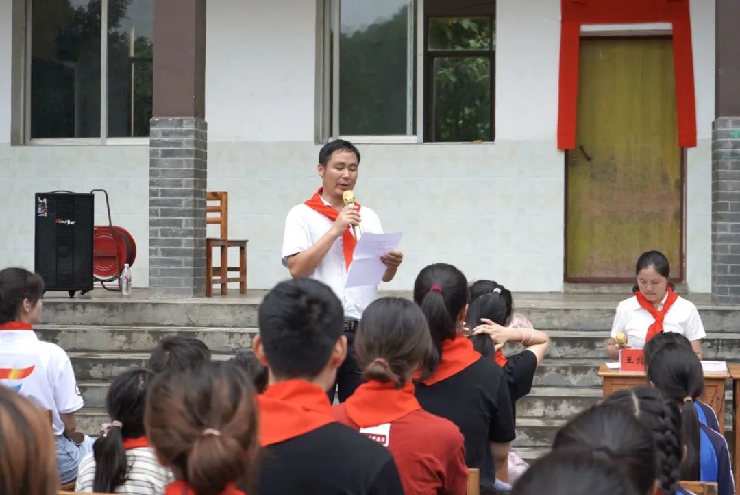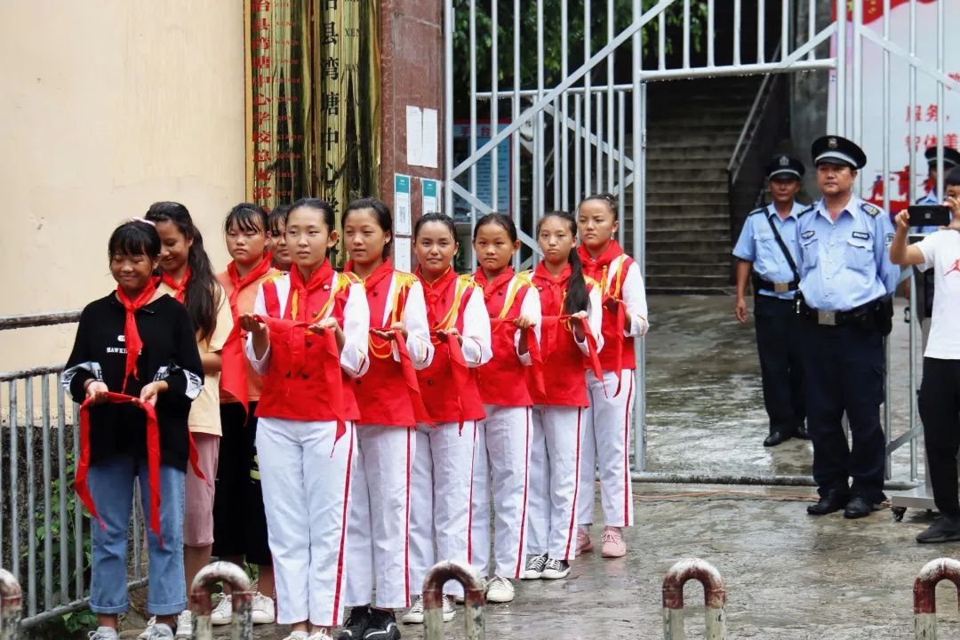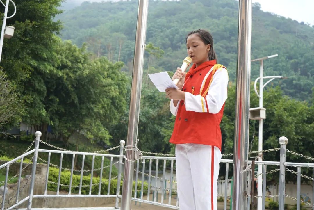 活动现场,全体实践队员佩戴小学生们亲手系上的红领巾,一同参加了学校的升国旗仪式;湾塘中心学校的学生代表进行“国旗下演讲”,对两校实践队表示感谢;该校的黄兴祥校长在活动讲话中讲述了建设“希望小屋”的目的和意义,并代表全体师生向两校表达了衷心感谢。