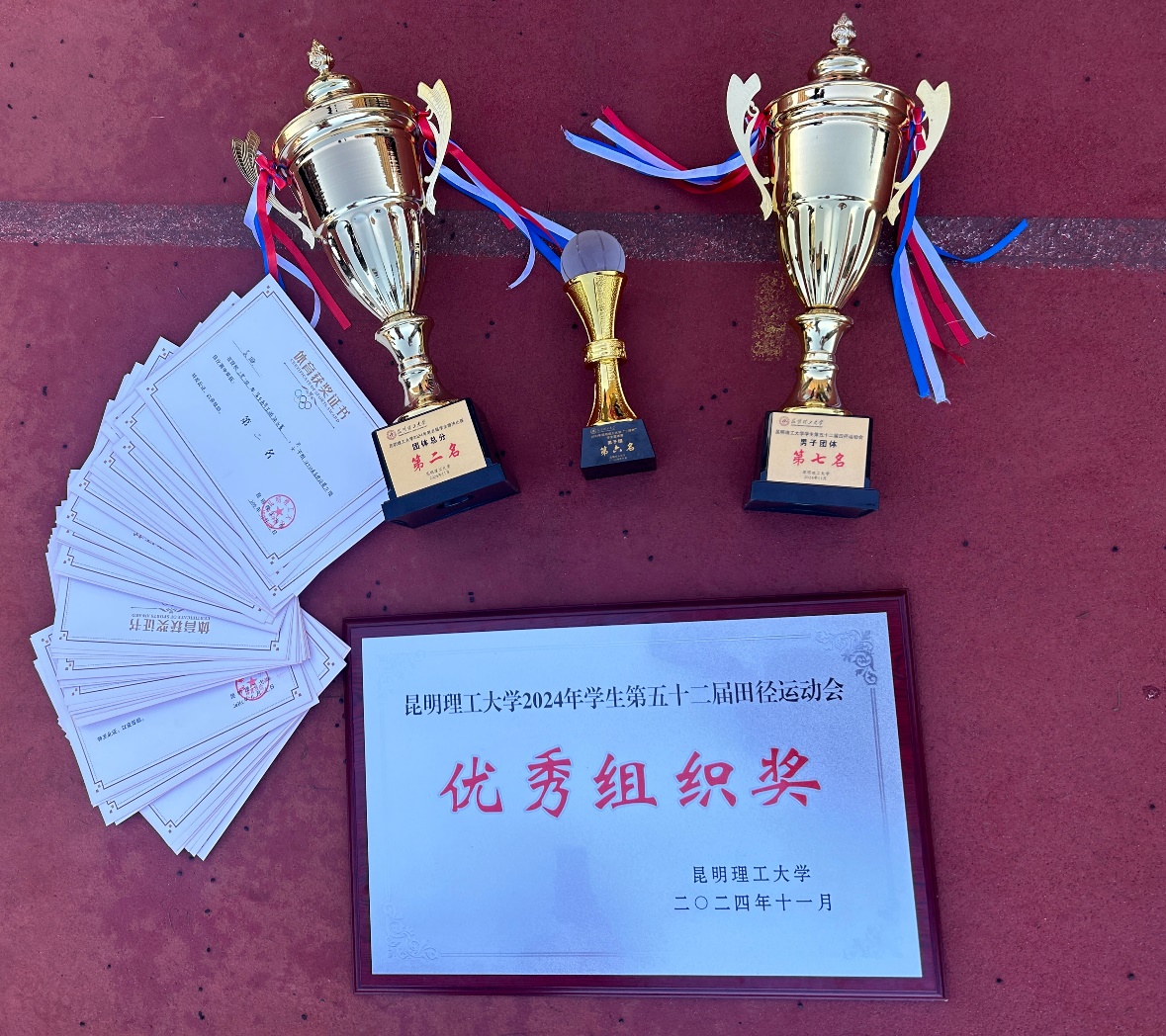 2024年学生第五十二届田径运动会学生男子组第七名、优秀组织奖的佳绩。