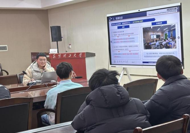 第十九届全国大学生交通运输科技大赛获奖选手,学院研究生普开蕊受邀参加分享会。他与同学们分享了自己的参赛过程和收获感悟。讲述了团队成员在比赛中团结协作,互相勉励,共同攻克难题的成长故事。“坚持比什么都重要”是普开蕊此次参赛最大的收获,他鼓励大家在勇攀科学高峰的道路上一定要坚定信心、不惧困难、善于总结。