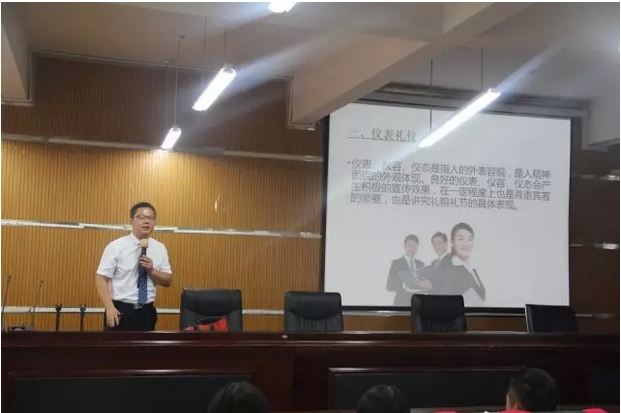 最后,平安产险的李老师就商务礼仪和社交礼仪给同学们上了生动的一课。他告诉同学们应该怎样注重仪容仪表,还提到了“人靠衣装,佛靠金装”,面试的时候应特别注重着装和卫生,还要多了解目标期望行业及想进的公司。