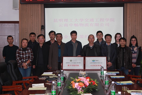 党委马旭东书记与云南中畅物流有限公司蓝济昌董事长签署了校企合作协议,学院和企业相互授予“人才培养基地”和“教学实践基地”的牌匾,双方将在人才培养、学科建设及教学实践等方面开展深入合作。